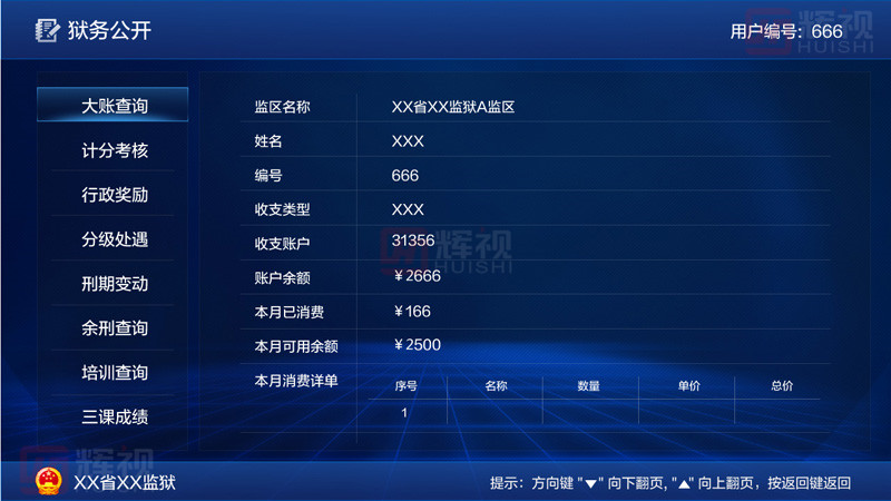 監區購物 支持遙控器進行監區內部電子購物及支付;