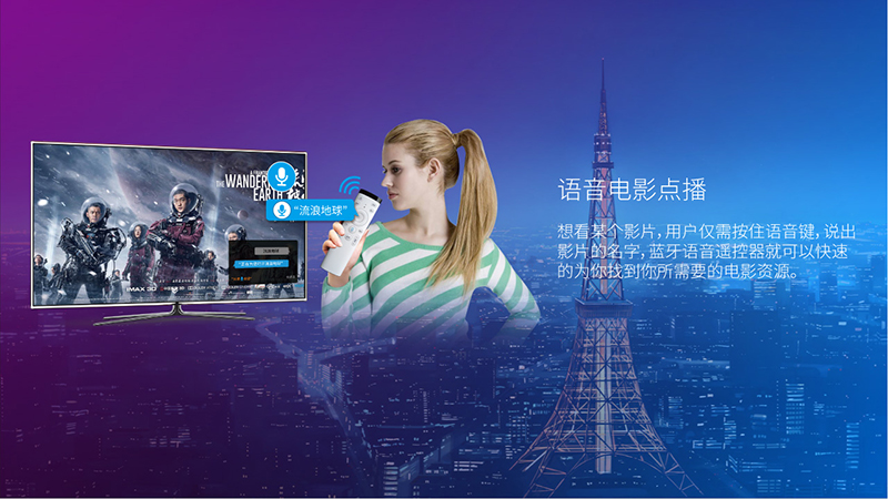 想看某個影片,用戶僅需按住語音鍵,說出影片的名字,藍牙語音遙控器就可以快速的為你找到你所需要的電影資源。只要電視里有的資源,它都可以即時的幫你播放,更加實用的一點是,語音遙控是貫穿全程的。看電視看到不喜歡的女二又賴在男主旁邊,就想趕緊快進:“快進幾分鐘”,馬上就可以跳過不需要的劇情,跟手動長按進度條快進相比,不知方便多少。聲音太輕要調(diào)大音量,或是暫停、退出,也全可通過語音遙控實現(xiàn)。輕松玩轉(zhuǎn)語音遙控后,看電視用遙控就變得非常輕松了。